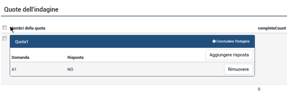In LimeSurvey non esiste la possibilità di uscire da un questionario in base alla risposta di una domanda del questionario stesso.