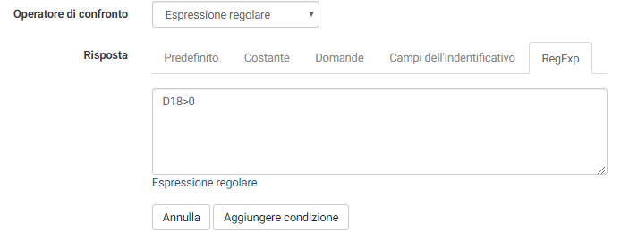 Vorrei che la domanda successiva comparisse solamente nel caso in cui il rispondende inserisca un numero maggiore di 0.