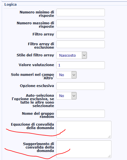 Dipende dalla versione. Sotto le impostazioni standard della domanda, dovresti trovare le altre impostazioni, devi clickare sul tab o titolo. In questo caso lo dovresti trovare su "Logica". Ma se usi una versione vecchia tipo 2.6 o precedente, allora non lo puoi proprio fare con la domanda testo breve