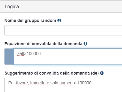 Comunque il modo più veloce per imparare è sicuramente provare direttamente a mettere in piedi le singole tipologie di domanda e cambiare qualche opzione e vedere con l'anteprima l'effetto che fa. Cerca di comprendere subito la differenza tra opzione di risposta e sottodomanda, e prima di cercare una soluzione personalizzata, guarda bene se c'è qualche impostazione che puoi settare e che ti puo' aiutare, come per le opzioni esclusive o i controlli di minimo/massimo.