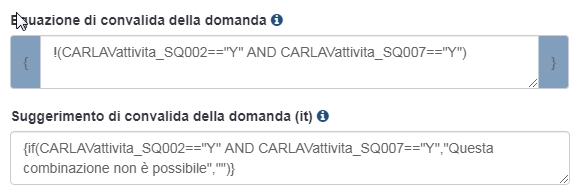 Quindi ti risponderò in estrema sintesi, ma la precondizione per seguire i suggerimenti è la consultazione di questa pagina del manuale: www.limesurvey.org/manual/Expression_Manager