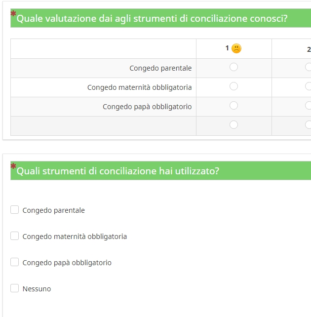 2) Con quel controllo, la domanda dovrebbe essere "Perchè utilizzi meno di 5 strumenti di conciliazione?". La rilevanza dovrebbe essere "count(that.UTILIZZstrumenti)<5", ma verifica la sintassi sul manuale.
