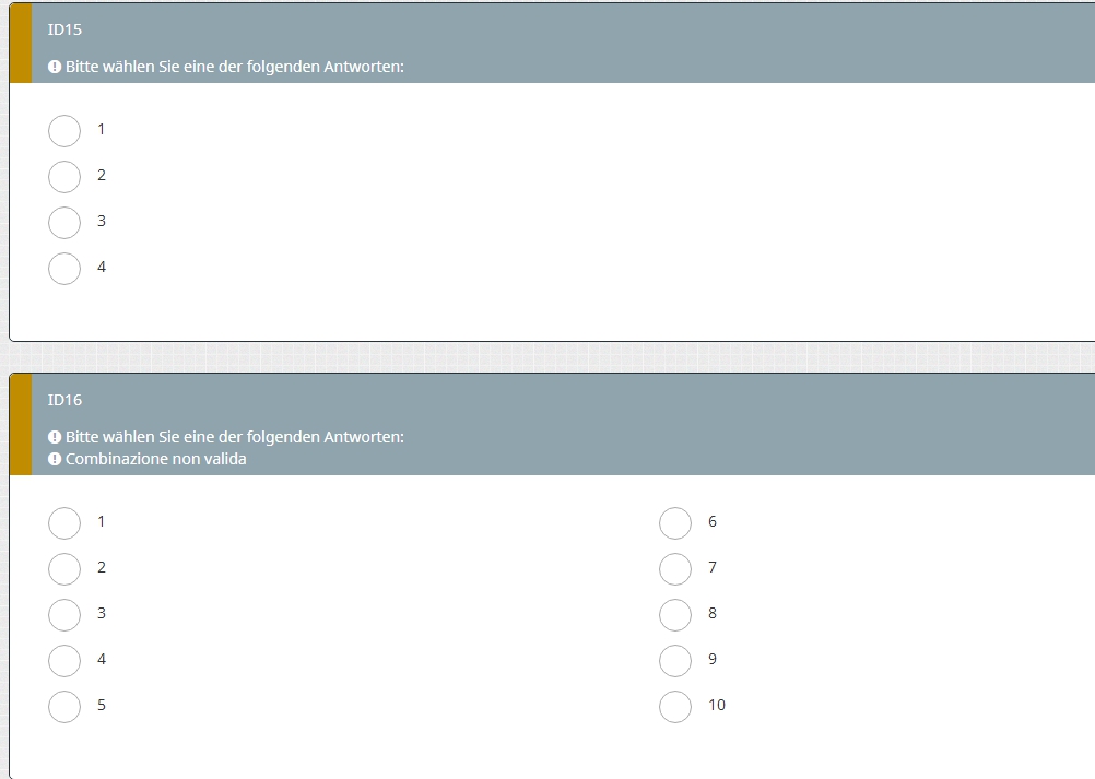 In particolare ho la domanda ID15 con 4 risposte da A1 a A4 e poi la domanda ID16 con 10 risposte da A1 a A10.