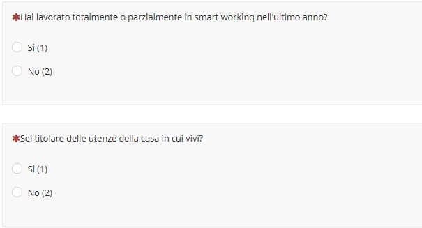 Sei titolare delle utenze della casa in cui vivi? (Radio Button con Sì e No)