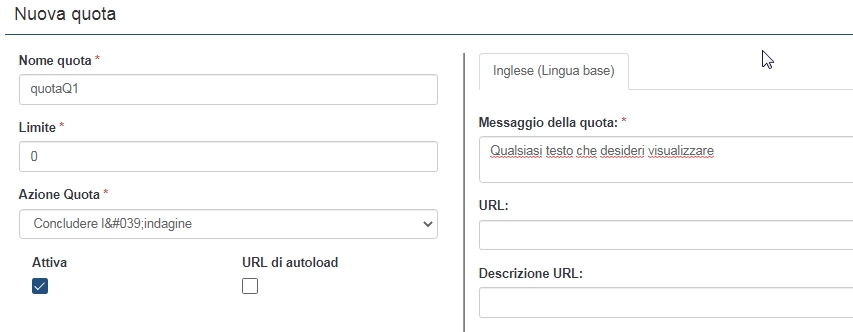 Assegna un nome alla quota, imposta il limite su "0" e aggiungi il testo che desideri.