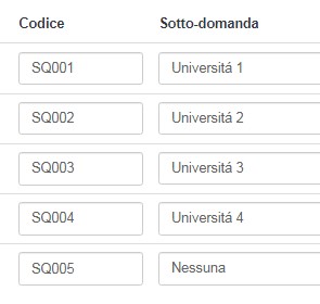Le sotto-domande di entrambe le domande hanno gli stessi codici.