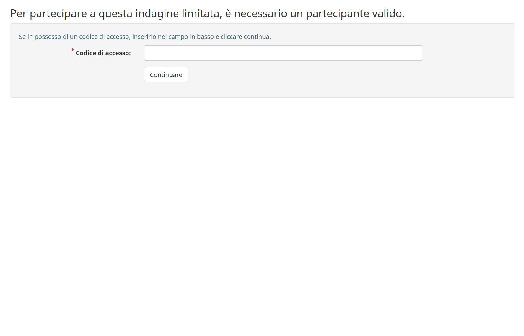 Prima quando inizializzavo la tabella dei partecipanti e mettevo indagine privata, nella pagina iniziale dell'indagine sotto la dicitura "Per partecipare a questa indagine occorre essere registrati" chiedeva nome, cognome e indirizzo mail.