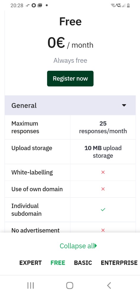avrei bisogno di sapere quante risposte massime posso ottenere a una survey con il piano free?