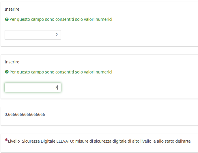 {if(S3.value <= 0,25, 'Livello Sicurezza Digitale MOLTO CRITICO: urgono significativi ed uregenti interventi', if(S3.value <= 0,5, 'Livello Sicurezza Digitale INSUFFICIENTE: necessario un potenziamento delle misure di sicurezza digitali in essere', if(S3.value <= 0,75, 'Livello Sicurezza Digitale IDONEO: misure di sicurezza idonee rispetto alle esigenze, in taluni casi opportuno un loro potenziamento', if(S3.value > 0,75, 'Livello Sicurezza Digitale ELEVATO: misure di sicurezza digitale di alto livello e allo stato dell'arte'))))}