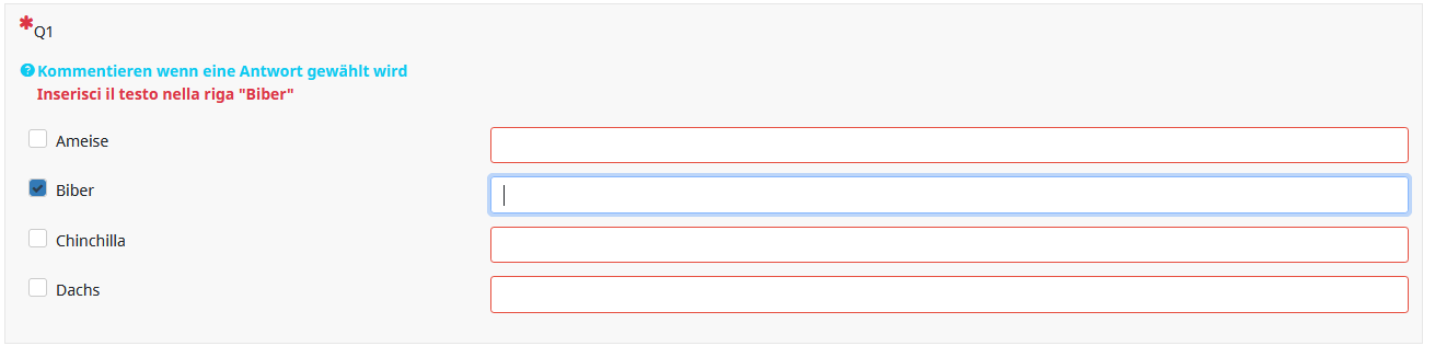 Salve, ho questa domanda, voglio evidenziare in rosso l'eventuale mancato riempimento del campo testo in corrispondenza della risposta scelta. Come posso fare? GrazieQuali soggetti sono coinvolti nella progettazione e realizzazione dell’attività teatrale curricolare:Il commento è permesso solo quando l'opzione relativa è stata scelta.