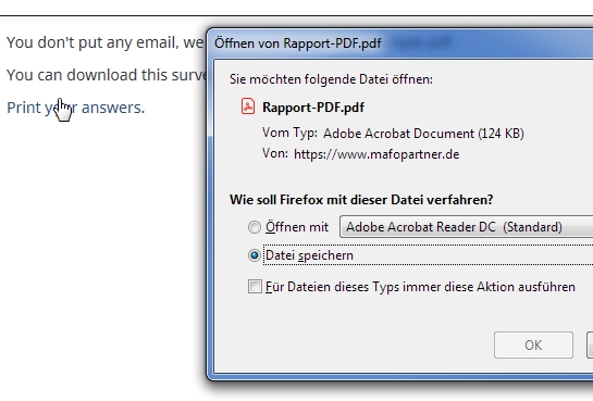 and clicking the link the windows dialogue appears with the report file