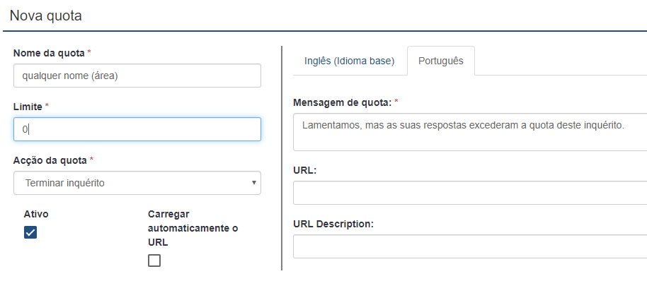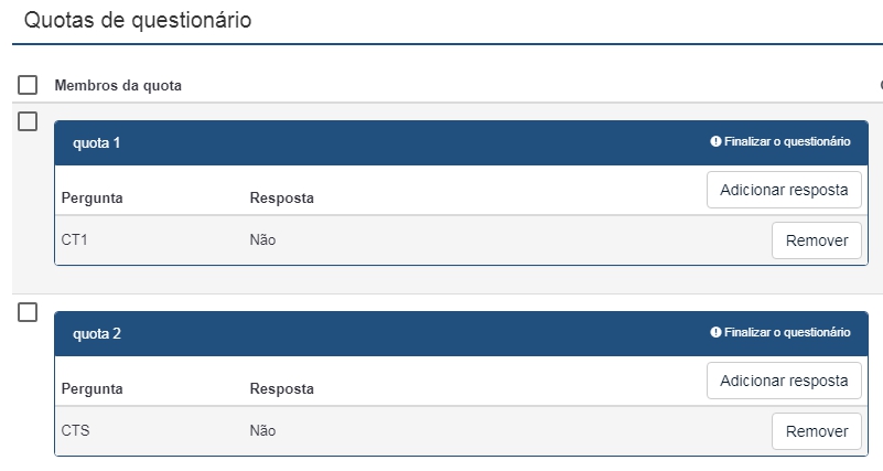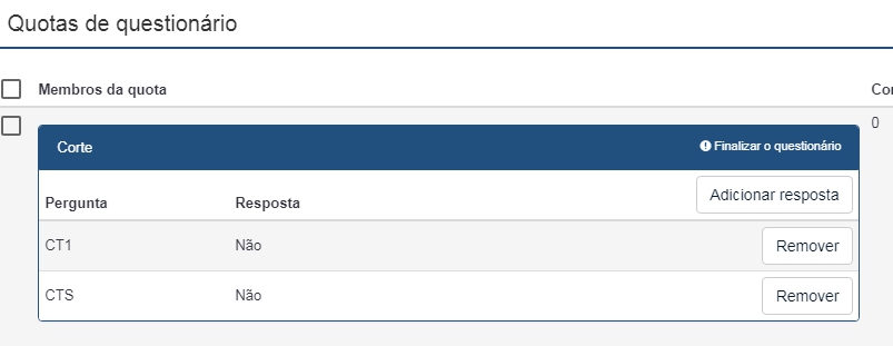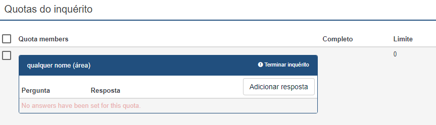 Já fiz a quota como me tinha indicado, mas ao fazer o teste do inquérito e selecionar uma das opções que introduzi na quota, o mesmo não termina.