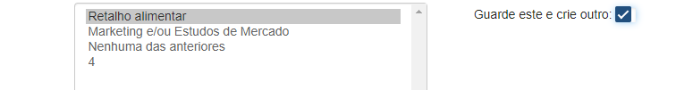 Numa questão de filtro, na qual se pretende saber se o inquirido trabalha em alguma das áreas mencionadas, tenho as seguintes opções: