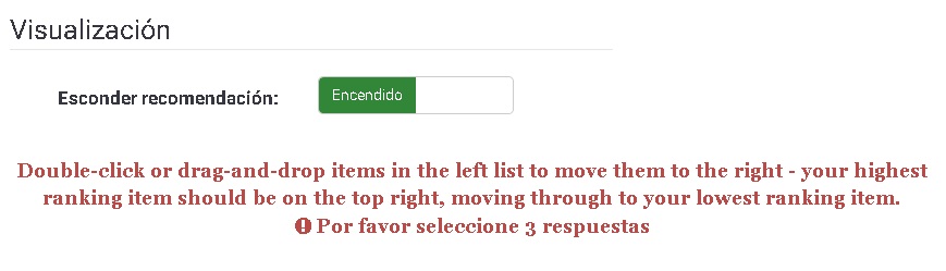 Double-click or drag-and-drop items in the left list to move them to the right - your highest ranking item should be on the top right, moving through to your lowest ranking item.