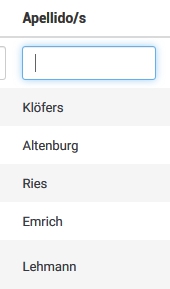 Quisiera saber cómo puedo usar los operadores de filtro de búsqueda en las tablas de participantes.