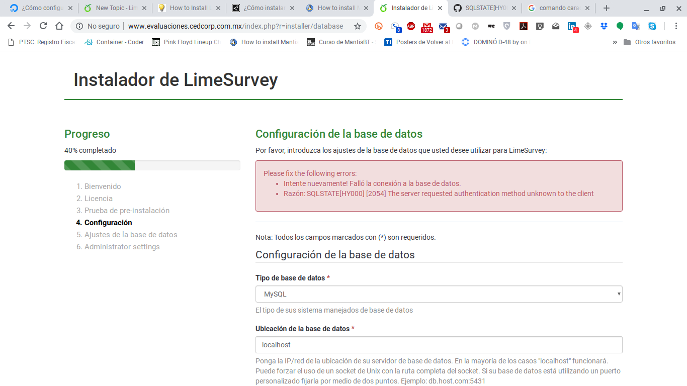 El servidor requiere un metodo de autenticación que el client (LS) no conosce.