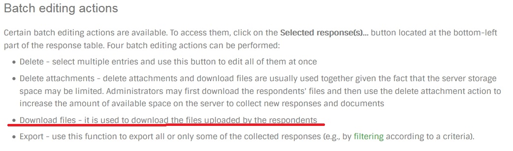 Una de las preguntas de mi cuestionario es de tipo "subir ficheros" y permite a mis usuarios subir un archivo .doc o .pdf