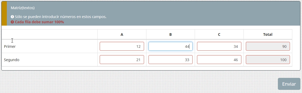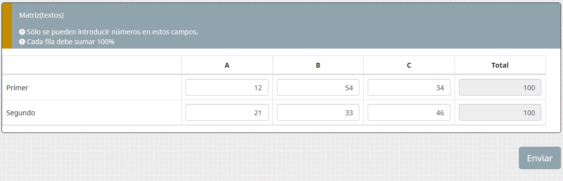 Hola, me gustaría si me pudieran ayudar ya que no entiendo aún muy bien los códigos, tengo una pregunta donde tengo distintas filas para dos años distintos y cada columna una pregunta, pero debo hacer que cada fila sume 100.