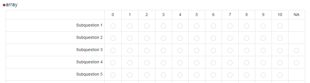 2. Permitir "no responder" (NA) a esta pregunta, no a otras