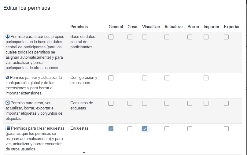 Alguien sabe como crear un usuario que solo pueda ver las encuestas y su estructura (o sea, de solo lectura)?