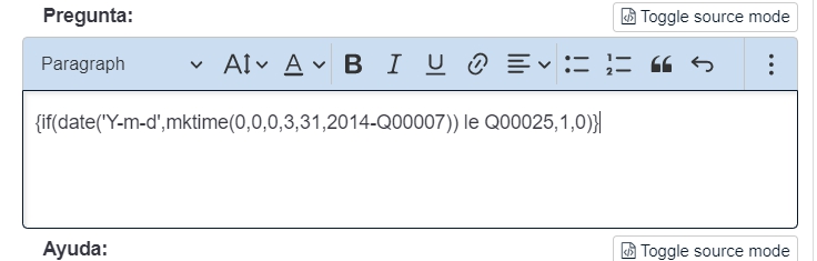 Probé la ecuación que me enviaste utilizando todo lo que muy amablemente me has enseñado y estuve revisando la página de ExpressionScript_sample_surveys que me enviaste.