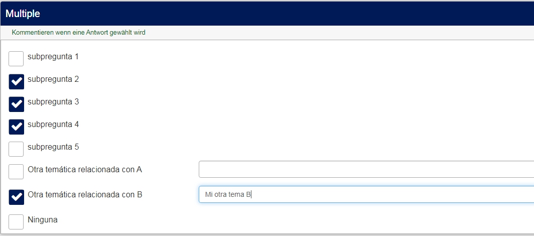Tome una pregunta del tipo "Opción múltiple con comentarios".