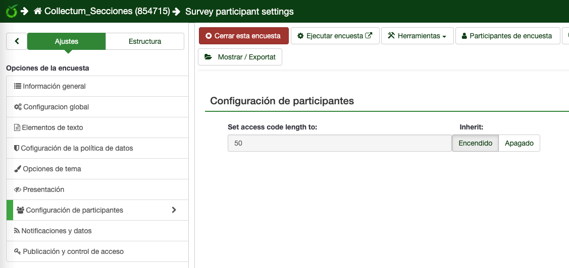 Tengo una integración de LS con un sistema. Desde este sistema realizo el envio de las encuestas a los participantes, pero hace días que no puedo enviar y me aparece un mensaje de que no es posible agregar más usuarios. Lo comente con quien realizo la integración y me dice que descubrio que en LimeSurvey hay una configuración por encuesta en donde se limita el número de combinaciones del token, por lo que los de la encuesta ya se agotaron y que han configurado 50 como global.