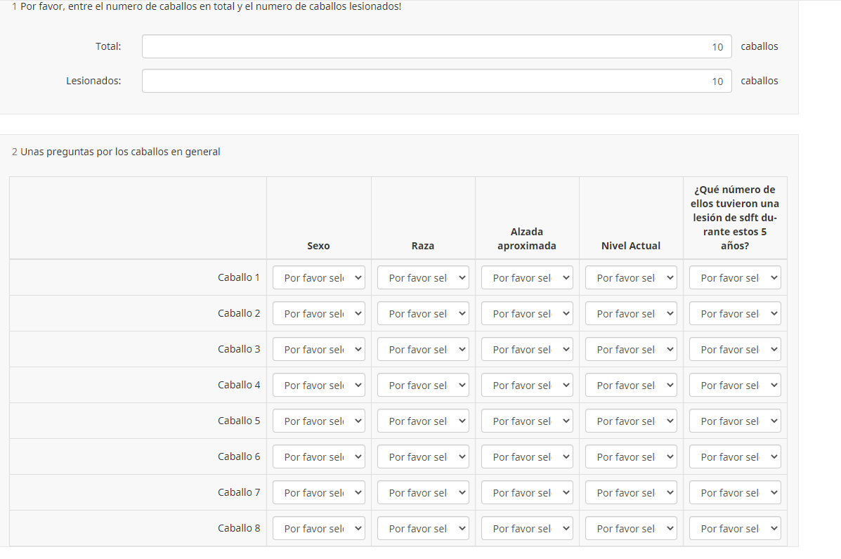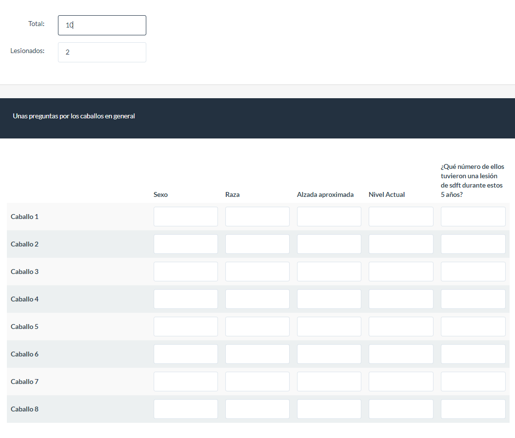 Posteriormente, sería una encuesta por cada caballo lesionado: