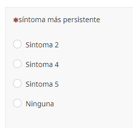 Una última pregunta, que creo más complicada... siguiendo con el ejemplo anterior... 1a pregunta síntomas frecuentes. 2a pregunta: cual limita tu calidad de vida? Ahora ya aparecen en la segunda pregunta los marcados en la opción múltiple en la primera pregunta, pero la idea es que tambien aparezca la opción "Ninguno". Esta opción de respuesta ya está en la primera pregunta, ya que puedes no tener ningún síntoma frecuente. Pero tambien puedes tener síntomas de manera frecuente pero que ninguno de ellos limite tu calidad de vida. Por eso, me gustaría saber si es posible forzar a qué aparezca la opción "ninguno" en la segunda pregunta aunqué no se haya marcado en la primera.