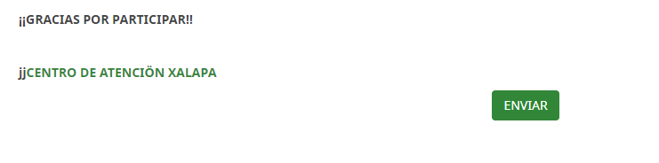 2. Este es el final de mi encuesta, donde agregué el botón enviar, el cual, deberá tener la condición de que si elije Xalapa, muestre la página o pdf de Xalapa.