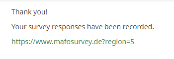 En la parte del mensaje final, que se muestra una vez concluida la encuesta, agregué la condición IF, donde si la pregunta Región, es igual a 1,2,..., creé un botón que redirija a un pdf o página web.