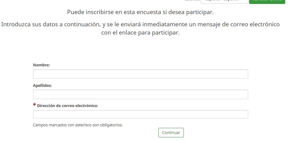 Ayúdenos a ayudarle y rellene los siguientes campos:. Su versión de LimeSurvey: 5.0 Servidor propio o LimeSurvey Cloud: Plantilla de diseño utilizada: Heredada