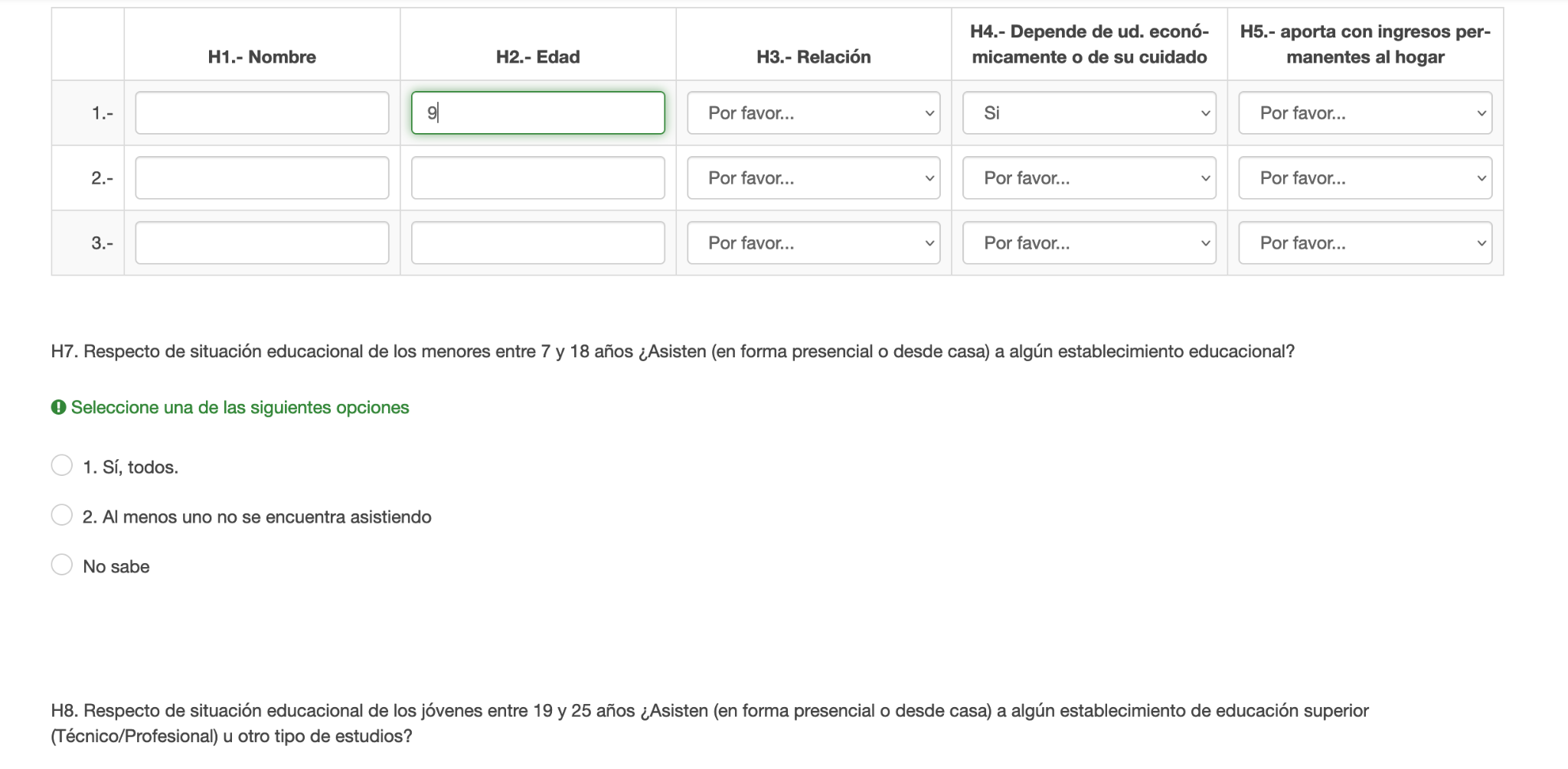 Hola buenas, tengo una matriz que se pregunta información y las edades del grupo familiar y después tengo 3 preguntas diferentes que va depender de la edad de la persona