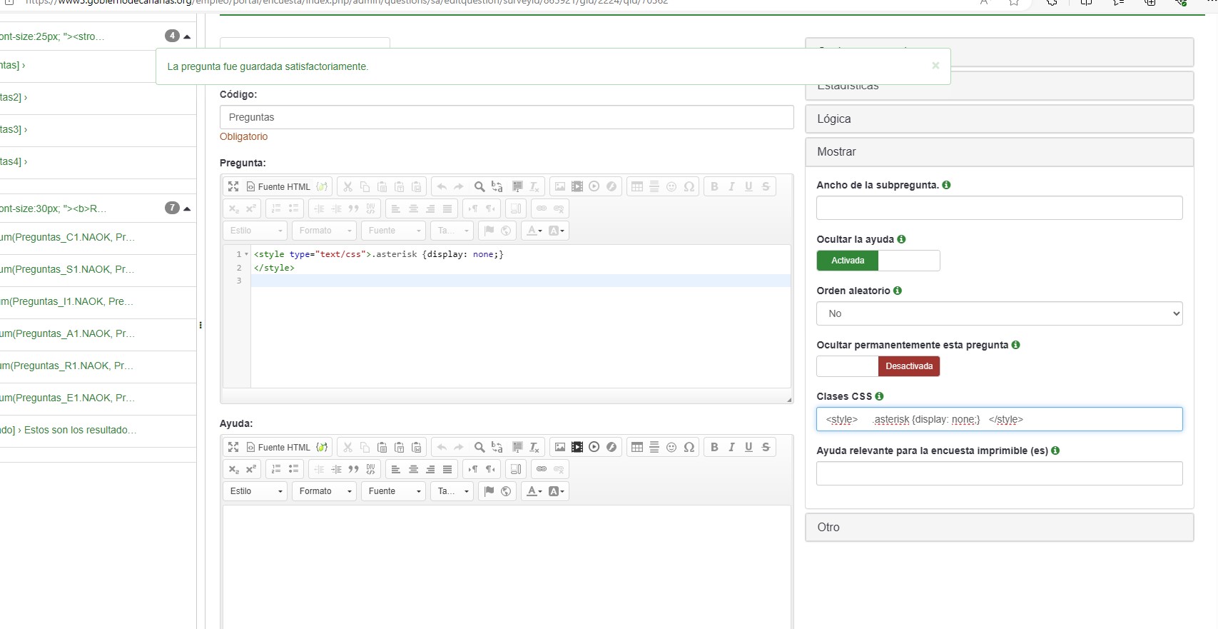 Ayúdenos a ayudarle y rellene los siguientes campos:. Su versión de LimeSurvey: Versión 3.22.6 Servidor propio o LimeSurvey Cloud: Servidor Propio Plantilla de diseño utilizada: Yeti