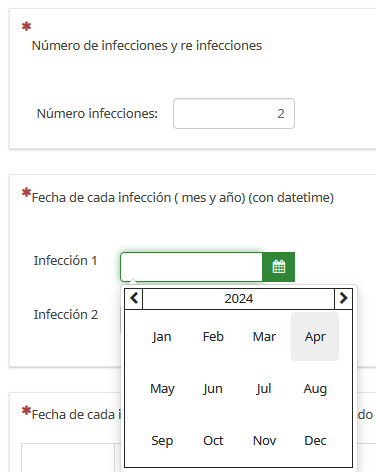 P2 se pide las fechas aproximadas de las infecciones (mes y año).