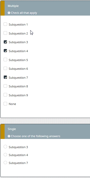I chose "group by group" for better display. If you want to display "question by question", feel free to do so.