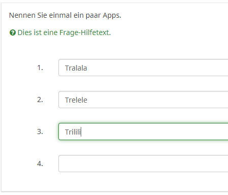 Solltest Du allerdings keine Rechte haben javascript einzusetzen (Du hast leider nicht gesagt, wo Deine Installation gehostet ist), kannst Du aber auf jeden Fall mittels Teilfragenrelevanz dafür sorgen, dass zunächst nur ein Eingabefeld zu sehen ist, und das nächste immer erst dann erscheint, wenn das vorherigen gefüllt ist.