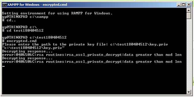 Please enter the path to the private key file: "" Warning: file_get_contents(): Filename cannot be empty in C:\LSEncryption\Test\decrypt.php on line 42